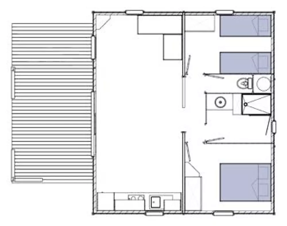 Louez un mobil-home ou un chalet en bois tout équipé.