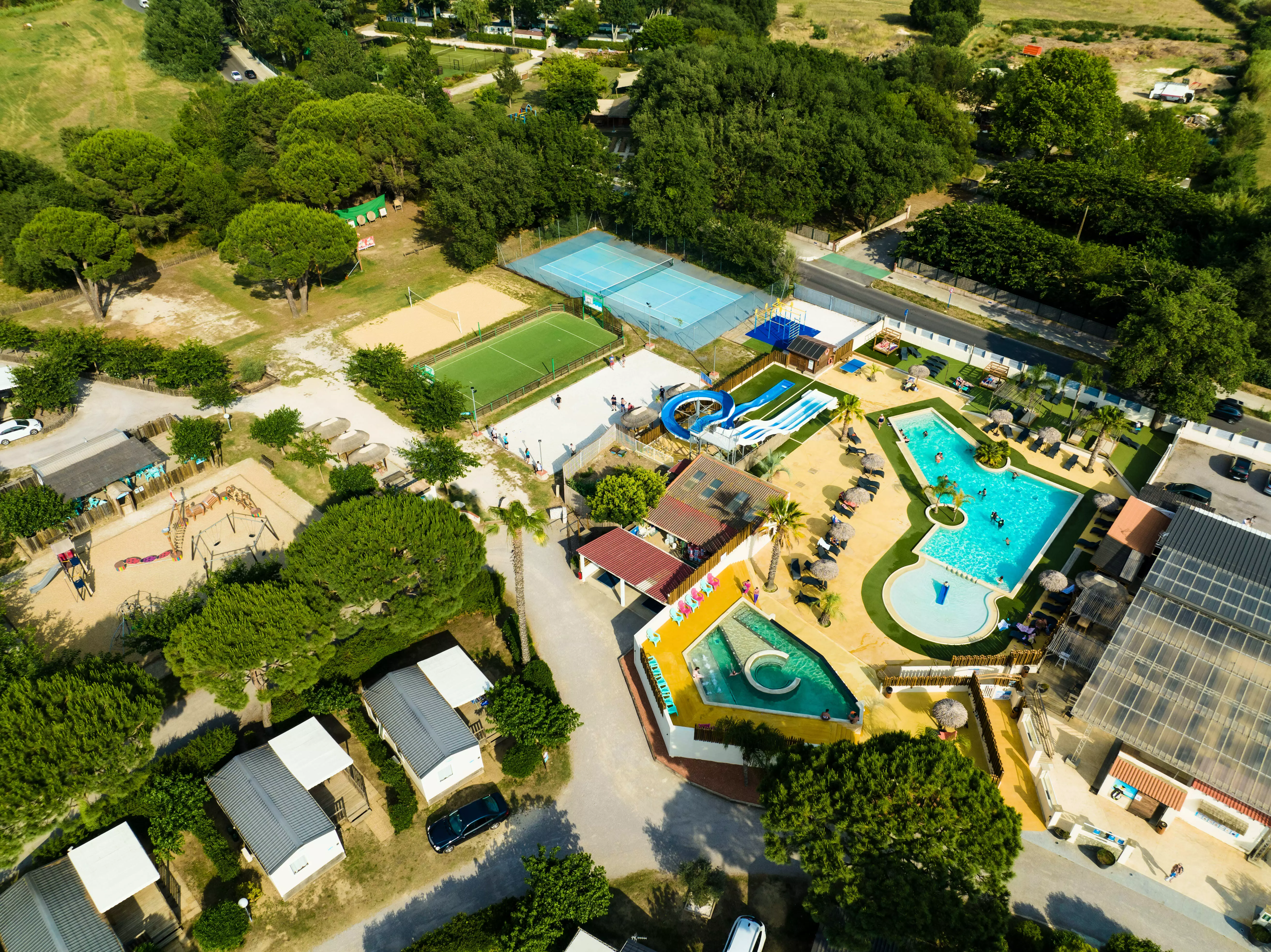- Parc Aquatique : 1 bassin 250m², toboggans, 1300m² de plages de piscine avec transat (ouvre à partir du 27/03/2026)