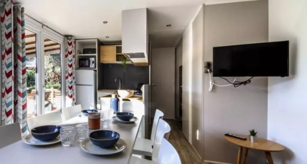 - Télévision : En option pour les mobil-homes de la gamme classique (40€/semaine ou 8€/jour)