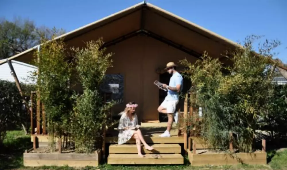 Le Camping Paradis Le Pearl**** à Argelès-sur-Mer est un camping familial tenu par un couple, Laura et Pierre depuis 2018. Ce camping est pour eux l’aboutissement d’une reconversion professionnelle. Parlez-nous un peu de vous ? (Pierre) Après avoir travaillé dans le commerce puis dans la restauration, nous avons souhaité nous installer dans ce camping à Argelès en 2018 pour être au plus proche de nos vacanciers.